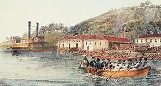 ![]() The Baron of Mauá inspecting the Ponta da Areia Shipyard in Niterói, 1857 lithography by Pieter Godfred Bertichen, National Library of Brazil | |