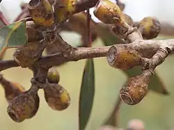 - Eucalyptus leptocalyx subsp. petilipes L.A.S.Johnson & K.D.Hill has smaller leaves, buds and fruit.[9]