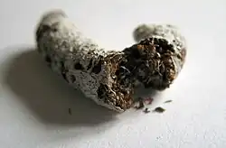 The main food of the European green woodpecker is ants of the genera Lasius and Formica[15] for which it spends much of its time foraging on the ground,[10] though other insects and small reptiles are also taken occasionally.[13] The bird's distinctive, elongated, cylindrical droppings often consist entirely of ant remains.[16] At ant nests, it probes into the ground and licks up adult ants and their larvae.[13] They have tongues that wrap to the back of their head.[18] Green woodpeckers will often forage in short grazed or mown permanent grasslands where the availability of ant nests is high.[19]
