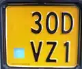 EU format plates are either white or yellow, on a plate wider than it is tall. Yellow registration plates are used both front and rear in Luxembourg and the Netherlands. Denmark and Hungary use yellow plates for vehicles registered as commercial vehicles. Denmark implemented the EU format in 2009, as the last EU country.[8][9] Danish plates have a small holographic strip to the right of the blue EU strip. In Greece, Cyprus, Latvia, Lithuania and Sweden yellow plates are used for taxi vehicles. In Poland yellow plates are used for historic vehicles.