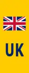 United Kingdom vehicles must have a white front registration plate and a yellow rear registration plate. These must be made made from a reflective material, commonly plastic but metal is permitted.[18] Post-2021 Regulations (Following Brexit): On 28 September 2021, the UK government changed the international vehicle code from "GB" to "UK" and notified the United Nations of this update,[19] effectively making all "GB" plates with the European circle of stars invalid for use abroad.[19] Since 2021, plates with the European circle of stars must not be issued. Plates valid for international travel under the Vienna Convention on Road Traffic must feature either the distinguishing code "UK" (in black or blue) or the Union Flag (landscape) alongside "UK." A green stripe on left-hand side of the plate is permissible for a zero-emission vehicle.[20] In England, Scotland, and Wales, registration plates may include one of the following flags with identifying letters on the left-hand side:[21]