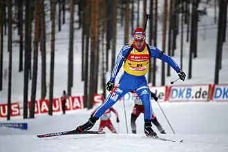Evgeny Romanovich Ustyugov (Russian: Евгений Романович Устюгов; born 4 June 1985) is a Russian former biathlete. Born to cross-country skiers, Ustyugov was introduced to biathlon at the age of three. He started his career in junior tournaments in 2005, before going professional three years later in the European Championships. He was Olympic champion in the men's 15 km mass start event at the 2010 Winter Olympics in Vancouver, British Columbia, Canada until the win was revoked for doping violations.[1] Prior to the 2010 Olympic Games, his best World Championship finish in an individual event was 20th place.