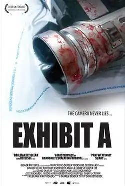 Exhibit A is a 2007 British independent psychological thriller film directed by Dom Rotheroe and produced by Darren Bender for Warp Films. The film is an example of the found footage genre and stars Bradley Cole, Brittany Ashworth, Angela Forrest and Oliver Lee. It was filmed on location in Yorkshire and Suffolk[2] and released on 1 October 2007 at the Raindance Film Festival.[1] It was the last film that prolific stuntman Roy Alon worked on.[3]