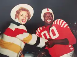 He was married to Virnetta Anderson, who was elected to Calgary City Council in 1974 as the city's first Black municipal councillor.[5] Anderson was born in Nashville, Arkansas, on February 10, 1920, to Florence and Ezzrett Anderson Sr. baseball player in the Negro Leagues. At Kentucky State he earned a spot on an all-America football team. While there he met his first wife Virnetta, from Hot Springs, Arkansas. In 1943 they moved California to help with the war effort. "Sug", as he was often called, was a two-way star who could pass, catch and defend. He soon attracted the attention of the pros, playing with the Hollywood Bears of the Pacific Coast League in 1945-46 and the Los Angeles Dons of the All-America Football Conference in 1947. During those years Sugarfoot also found work in the movie industry, appearing in over 20 films, including a speaking role in the original Story of Seabiscuit with Shirley Temple and Barry Fitzgerald. In 1949, the Calgary Stampeders persuaded Anderson to play for Calgary. He became a popular figure both on and off the field for his talent and affable personality. He was an all-star CFL player in 1949 when the Stamps lost to the Montreal Alouettes in the Grey Cup and was one of only two Americans to make all-pro in Canada at both offence and defense. He retired at the end of 1955, was added to the Stampeders' Wall of Fame in 1990 and inducted into the Alberta Sports Hall of Fame in 2010. From 1950 to 1955 Sugarfoot had a popular radio show on CKXL, fronted a blues band called "The Bluenotes." In 2013 he was presented with the Canada's Recording Legacy Award of Recognition. Sugarfoot attended Southern Alberta Institute of Technology, where he trained as a mechanic. He owned a service station in downtown Calgary and went on to work for the group of companies that included Standard General, Inland Cement, and Genstar, retiring after 32 years. Anderson worked for the Stampeders as an account representative and ambassador for the team and the Calgary Stampeders Alumni Association. Anderson died on Wednesday, March 8, 2017, at the Foothills Hospital.