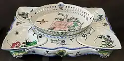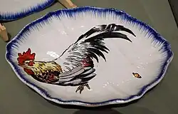 The service was then completed (teacups, coffee, etc.) and the manufacture left to the Creil and Montereau factory. Barluet, Lebeuf's successor, re-edited it in the early 1880s. In 1885, Eugène Rousseau sold his business to Ernest-Baptiste Leveillé, who continued to publish the service under his own brand. Many reissues or variants followed. Among them, that of the Manufacture Jules Vieillard in Bordeaux (late 19th century), that of the Crystal Stairs (early 20th century), or even of the faience of Gien The large birds still in reissue. It can also be noted that many pieces of this service are now preserved in various French national museums (Musée d'Orsay, Musée national Adrien Dubouché, etc.).[11]