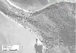 By September 1938 the northern area of Fantome Island was under consideration as a tubercular settlement, while a leper settlement was proposed for nearby Curacoa Island. A map of Fantome Island at this time indicated that "farm villages" (for chronic STI cases) existed along the western side of the northern point of the island, and an early 1939 map included two villages roughly where the lazaret male and female compounds were later built; and a "vegetable growing area" at the east end of the small valley just south of the 10,000-imperial-gallon (45,000 L; 12,000 US gal) water tank.[1][21]