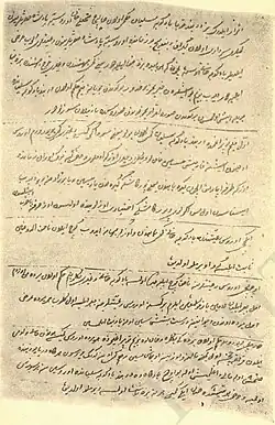 Fatali Khan was a Shia Muslim.[51][52] According to Samuel Gottlieb Gmelin, who visited him in his palace in Derbent, Fatali was well-regarded and did not hesitate to drink or use a hookah.[53] Some of his followers even believed that he was practically an atheist.[54] According to Isgander bey Hajinsky, he was also a bit promiscuous.[7] He knew Russian, Persian and Azerbaijani languages, as well as various languages of Dagestan.[54] Some samples of his poetic work have been preserved.