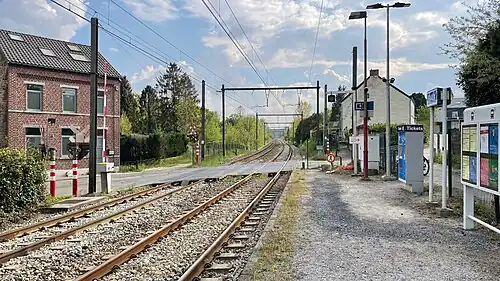 Faux is a railway station in Faux, Court-Saint-Étienne, Walloon Brabant, Belgium. It opened in 1901 on the Line 140 (Ottignies - Fleurus - Charleroi).
