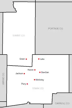| GlenOak | Golden Eagles | Plain Township | Forest Green, Vegas Gold | 1975 | ||