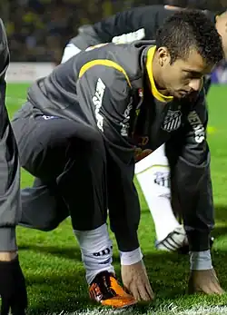 Felipe Anderson then played for Santos' youth categories, and was promoted to the senior squad following a rash of injuries in October 2010.[5] He began training with the senior side and signed a professional contract until July 2013.[6] He made his debut for Santos on 6 October 2010 as a 90th-minute substitute in a 3–0 win against Fluminense.[7]