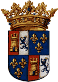 Coat of Arms of the family Cardona, Barons, Viscounts, Counts, (since 1375), and Dukes, (since 1491), successively, since their beginnings around the 11th century, from the kingdom of Aragon - Catalonia. Their titles, several times linked with royal connections, were passed through male or female inheritors. Súria and Cardona, in Catalonia have provided for over 1000 years potassium salts for dried meat keeping and gunpowder manufacturing. A "Cardo" in Spanish is a "Thistle" plant for the Scots, hence, their coat of arms.