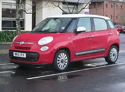 • Fiat 500L (2012–2022), a five-door, five passengers, front-engine, front-wheel drive, high-roof B-segment MPV, which Stellantis markets globally in more than 100 countries — with the notable exception of Russia.[12] By early 2018, production surpassed 500,000 units.[13]