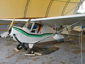 The standard powerplant when the aircraft was introduced was the 28 hp (21 kW) Rotax 277 single cylinder, two-stroke powerplant driving a two-bladed wooden propeller. Recoil start was standard, with electric start as optional.[1]