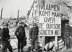 The German authorities aimed to exploit the longstanding linguistic problems in Belgium, particularly the systematic discrimination towards the Dutch language that existed before World War I. The policy was also based on Pan-Germanism. The German policy of fostering separatism in Flanders was a failure because it did not win popular support.[1]