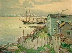 Three of her paintings are part of the National Gallery of Canada collection, Midwinter, Dunbarton, Ontario (1918), Afterglow (1914), and St. Anthony Harbour, Newfoundland, (1926).[17] the Art Gallery of Ontario,[18] the Art Gallery of Hamilton,[19] the Agnes Etherington Art Centre[20] and galleries in Oshawa, Whitby, Kitchener, London, and Windsor also have her work in their collections.