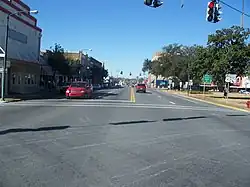 The divided segment comes to an end north of I-10 between Beaver Lake Road and Thomas Smith Farm Road. As SR 12 curves back toward the east, it encounters another section of CR 270 (Bassett Road) and the eastern terminus of CR 270A (Flat Creek Road), just before a wye intersection with SR 65 (Hosford Highway) where the west end of concurrency with the route begins. Immediately after this intersection SR 12/65 has another intersection with another one of SR 65's suffixed routes, specifically County Road 65A (Dewey Johnson Way) that leads north to Gretna. In Douglas City SRs 12/65 serves as the address for the Gadsden Correctional Facility, and then an at-grade crossing with the CSX Tallahassee Subdivision a line that carried the Amtrak Sunset Limited until it was truncated to New Orleans, Louisiana by Hurricane Katrina in 2005. Right after this crossing SRs 12/65 has an intersection with U.S. Route 90, and joins that route in another concurrency. The Tallahassee Subdivision begins to move away from US 90/SRs 12/65, but almost comes back just before the intersection with CR 274 before entering Quincy where the concurrency becomes West Jefferson Street. Within the city the road encounters an at-grade railroad crossing with a spur of the Tallahassee Subdivision. This spur runs next to the beginning of the concurrency with SR 267 and CR 268 once again. The concurrency with SR 267 may have been in the process of being eliminated though, as a four-lane stub extends a block north of US 90. US 90/SRs 12/65/267/CR 268 enter the Quincy Historic District at Stewart Street. Four blocks later at Adams Street, SR 267 leave US 90 to the north, and CR 268 turns in the opposite direction. Between there it runs in front of the Gadsden County Courthouse and a block later at Madison Street, passes the former routing of SR 12. US 90 and SR 12 head east out of the city and at SR 269, SR 12 turns north off the US 90 concurrency.[2]