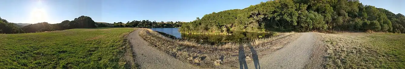 The park contains nearly one tenth of all land in Palo Alto.[3] About 90 acres (36 ha) of the park are developed with amenities including a large grassy field, picnic sites, a walk-in, tent-only campground, and a nature interpretive center. Boronda lake is used for fishing, rowing, and canoeing. The park also has 15 miles (24 km) of trails.[1]