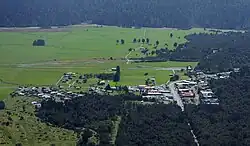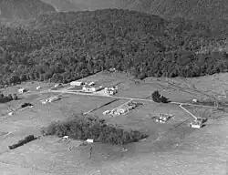 The origins of the settlement lie 20 kilometres (12 mi) away, on the coast at Gillespies Beach, which underwent a gold rush in the 1860s. At that time, Gillespies was briefly the third-largest town on the West Coast. As the amount of gold being recovered declined, most of the population, including the Sullivan family of miners, moved on. Patrick Sullivan moved inland with his friend Fred Williams to try farming in an area known as the Weheka Valley.[5] Julia Sullivan married Fred Williams in 1893 and built a farmhouse on the Cook River flats near the present site of the settlement. By the early 1900s large amounts of forest on the flats had been cleared and become farmland.[5]