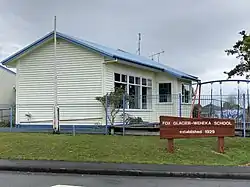 This became Fox Glacier School, and is now Fox Glacier Weheka School. It is the only school in Fox Glacier, serving approximately 9 students from Years 1 to 8 (ages 5 to 12).[42] The nearest secondary school to Fox Glacier is South Westland Area School, 85 km (53 mi) away in Hari Hari.