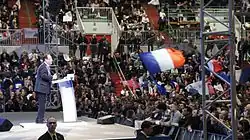 Hollande's presidential campaign was managed by Pierre Moscovici and Stéphane Le Foll, a member of Parliament and Member of the European Parliament respectively.[27] Hollande launched his campaign officially with a rally and major speech at Le Bourget on 22 January 2012 in front of 25,000 people.[28][29] The main themes of his speech were equality and the regulation of finance, both of which he promised to make a key part of his campaign.[29]