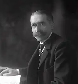 On 26 April 1914 François de Wendel once more ran for election to the legislature in the second district of Briey.[6] He was elected on the Fédération républicaine platform as a deputy for Meurthe-et-Moselle, holding office until 7 December 1919.[14] The family opposed his entry into politics, which they thought likely to damage the firm, as did his fellow-members of the Comité des forges.[15] He would indeed often be accused, wrongly, of acting in the interests of his industrial empire rather than those of France, and this may have damaged the business.[12] After the post-war slump of 1920 caused unemployment to rise the Wendels were often cast as the villains.[12] François de Wendel was attacked over his role in World War I, his opposition to the Cartel des Gauches led by Édouard Herriot in 1924–26 and his support of the nationalist and conservative Raymond Poincaré.