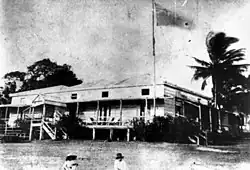 At the time of his dismissal, Jardine was in a relationship with a fifteen year old Samoan girl named Sana Solia who had been brought to the Torres Strait by the missionary George Turner.[16] They married in late 1873 and lived together on Nagi Island (also known as Naghir or Mount Ernest Island) where Jardine continued his pearl shell business and built a family home. In 1877 this house burnt down with much of the Jardines' personal possessions.[24] Fortunately for them, the government in that same year had decided to move its base of Torres Strait operations from Somerset to Thursday Island and approached Frank Jardine with the offer to purchase the old site at Cape York. He accepted and the Premier of Queensland, John Douglas, noted that Jardine would also be able to protect British interests in the area from the remnant Yadhaigana people who still offered resistance to colonisation.[25]