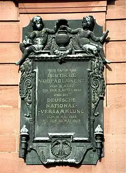 The session was held from 18 May 1848 to 30 May 1849 in the Paulskirche at Frankfurt am Main.[3] Its existence was both part of and the result of the "March Revolution" within the states of the German Confederation.