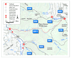 | Trailheads | French Pete Trailhead (west) Pat Saddle Trailhead (east) |