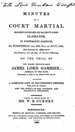 - Gurney, W.B. (1809). Minutes of a court-martial . . . on the trial of James Lord Gambier. London: Mottey, Harrison & Miller.