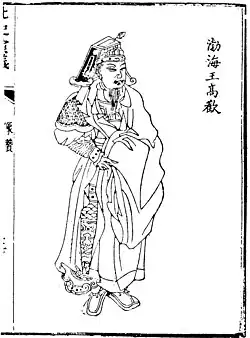 Gao Huan (simplified Chinese: 高欢; traditional Chinese: 高歡; pinyin: Gāo Huān) (496 – 13 February 547[1]), Xianbei name Heliuhun (賀六渾), formally Prince Xianwu of Qi (齊獻武王), later further formally honored by Northern Qi initially as Emperor Xianwu (獻武皇帝), then as Emperor Shenwu (神武皇帝) with the temple name Gaozu (高祖), was the paramount general and a minister of the Xianbei-led Northern Wei dynasty and its branch successor state Eastern Wei dynasty. Although he was an ethnic Han, Gao was deeply influenced by Xianbei culture and was often considered more Xianbei than Han by his contemporaries. During his career, he and his family became firmly in control of the Eastern Wei court. Eventually, in 550, his son Gao Yang forced Emperor Xiaojing of Eastern Wei to yield the throne to him, establishing the Gao clan as the imperial house of a new Northern Qi dynasty.