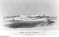 The Garz fort is now a protected archaeological site. It ranks, in terms of size and degree of preservation, as one of the most important Slavic strongholds. Originally, it was confused with the castle of Charenza, which was reported in historical chronicles. However, recent interdisciplinary research in 2004 and 2005 has shown that the fort at Venz (between Gingst and Trent onat the Neuendorfer Wiek) is much more likely to be the prince's castle and temple of Charenza, which was surrendered without a fight on 16 June 1168 to the King of Denmark Valdemar I and his army commander, Absalon of Roskilde, after negotiations had been held. This was one day after the conquest of the Jaromarsburg castle and temple on Cape Arkona.[1][2]