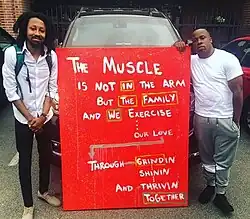 Genesis, standing next to a piece commissioned for the Rapper and music executive Yo Gotti.