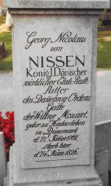 Nissen died, aged 62, in Salzburg, and was buried there. His tombstone, naming him "The husband of Mozart's widow", can still be visited.