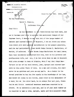 - ^ a b "Missouri's New Judges", Hamilton Advocate-Hamiltonian (December 5, 1890), p. 2.