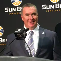 Georgia State's first head coach Bill Curry was the initial architect for the program. His tenure ended with a record of 10–23. Initially hired by the former athletics director Mary McElroy, after her termination by previous Georgia State president Carl Patton, Curry was named interim athletic director while the school searched for a new AD.[51] During his tenure as head coach, Curry saw the program grow from an idea into a fully fledged division I – FCS team. He also was present for the beginning of the transition from the football championship subdivision (FCS) to the football bowl subdivision (FBS) as the school changed athletics conferences from the Colonial Athletic Association to the Sun Belt Conference.[52] While Georgia State built the foundations for its football program with him at its helm, including new practice facilities and offices, Curry's teams experienced little success on the field. After a 6–5 record in its first season, the Panthers followed with a 3–8 record in its second season, and finally closing with a 1–10 record in his final year. However, the university honored its founding head coach by naming the locker rooms at the new football practice facility after Curry.[53]