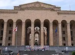 The Parliament of Georgia Building (Georgian: საქართველოს პარლამენტის შენობა, romanized: sakartvelos p'arlament'is shenoba) is the meeting place of the Parliament of Georgia, located in Tbilisi, the capital of Georgia. It is located in 8 Rustaveli Avenue, close to the foothills of Mount Mtatsminda.