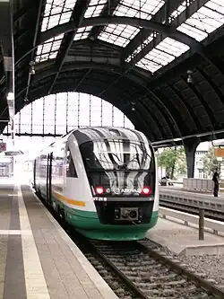 Gera Central Station[4] (Gera Hauptbahnhof) is the main station of the Thuringian town of Gera. Gera is one of the largest cities in Germany with no long-distance rail connections and no electrified lines. The station is a significant regional transport hub. The station is classified by Deutsche Bahn as a category 3 station.