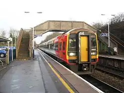 In 1923 the LSWR became part of the Southern Railway, which in turn was nationalised in 1948 to become the Southern Region of British Railways. A new signal box was opened on 28 April 1957, but on 5 April 1965 public goods services were withdrawn. Three years later a fertiliser distribution depot was opened in the old goods yard (it closed in 1993). The line had been transferred to the Western Region in 1963, and through trains beyond Exeter St Davids were soon diverted along other routes. The line was reduced to just a single track on 1 April 1967 with a passing loop retained at Gillingham.[1] Initially the single-track sections were 7-mile (11 km) westwards to Templecombe and 19-mile (31 km) eastwards to Wilton, but the latter was shortened to 9-mile (14 km)[2] in 1986.[1] The former signal box (now reduced to ground frame status following the 2012 resignalling) is at the west end of the station by the end of this platform.[2][3]