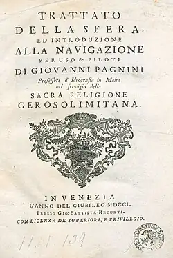 - Pagnini, Giovanni (1750). Trattato della sfera, ed introduzione alla navigazione per uso de' piloti (in Italian). Venice: Giovanni Battista Recurti.