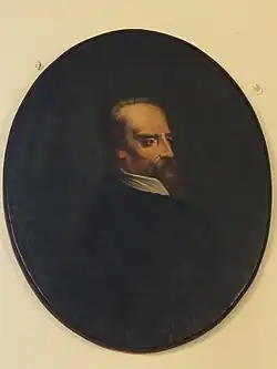Girolamo Frachetta was born in Rovigo in 1558, where he studied the humanities with Antonio Riccoboni.[1] He then studied philosophy with Francesco Piccolomini at the University of Padua.[1] After graduating in law, he placed himself at the service of Luigi D'Este, Scipione Gonzaga, and Antonio Fernández de Córdoba y Cardona, Duke of Sessa, the Spanish Ambassador in Rome.[2] For unknown reasons he was forced to leave Rome and he retired to Naples, where he was protected in by the Viceroy, Juan Alonso Pimentel de Herrera, Duke of Benavente, who assigned him a liberal pension. He died in Naples in 1619.
