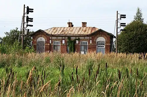 Glūda Station is a junction railway station in the village of Glūda in the Semigallia region of southern Latvia. The station is a railway junction where the Jelgava – Liepāja[1] and Glūda–Reņģe[2] railways meet. Trains do no longer stop at the station.