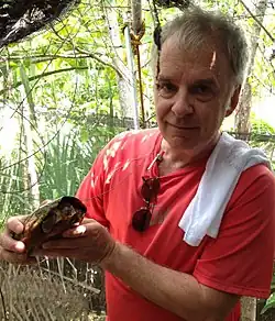 On a quest to see all fifty-four stuffed Labrador duck specimens that remain in existence for his first book The Curse of the Labrador Duck, he travelled 72,018 miles by aircraft, 5,461 miles by train, 3,566 miles by car, 1,169 miles by bus and 43 miles by ferry.[1] That distance is the equivalent of 3.3 times around the Earth. His second book, Attack of the Killer Rhodeodendrons (a.k.a. The Last Place You'd Look for a Wallaby), which examined plants and animal species that were introduced to foreign locations by humans, took him to six continents and fourteen countries[3]