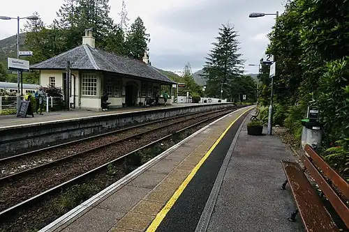 Glenfinnan railway station is a railway station serving the village of Glenfinnan in the Highland council area of Scotland. It is on the West Highland Line, between Lochailort and Locheilside, located 14 miles 58 chains (23.7 km) from the former Banavie Junction. Glenfinnan Viaduct is about 0.7 miles (1 km) to the east of the station.[4] ScotRail, who manage the station, operate all services.