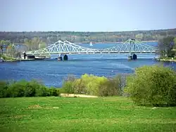 The Glienicke Bridge (German: Glienicker Brücke, ⓘ) is a bridge across the Havel River in Germany, connecting the Wannsee district of Berlin with the Brandenburg capital Potsdam. It is named after nearby Glienicke Palace. The current bridge, the fourth on the site, was completed in 1907, although major reconstruction was necessary after it was damaged during World War II.[1]