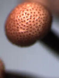 Close-up of a stroma of ergot, an ascomycete A mass of vegetative hyphae where fertile hyphae, fruiting bodies, and spores are produced. Common among ascomycetes and anamorphic fungi; a few Pucciniales have them as well.[370]