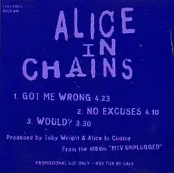 "Got Me Wrong" is a largely acoustic song by the American rock band Alice in Chains, originally featured on the band's 1992 EP, Sap. It was written by guitarist and vocalist Jerry Cantrell, who also shared vocals with Layne Staley. A slightly different version of the song also appeared on the soundtrack to the 1994 comedy film Clerks, and is played when the character Randal first appears in the movie. "Got Me Wrong" was released as a single in 1994 after being featured on Clerks. The song was included on the compilation albums Nothing Safe: Best of the Box (1999) and Music Bank (1999). An acoustic version performed on Alice in Chains' MTV Unplugged concert in 1996 was released on a live album and DVD.