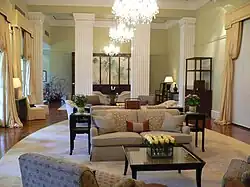 • Drawing Room – The Drawing Room is used for receiving guests and holding meetings. Its walls and ceilings are embellished with exquisite plaster mouldings.