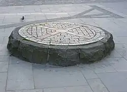 An inscribed flagstone in the central pavement in front of the White Hart Inn indicates the spot where a bomb exploded during a Zeppelin raid on the city on the night of 2–3 April 1916. Eleven people were killed in the raid, though none at this particular spot.[6]
