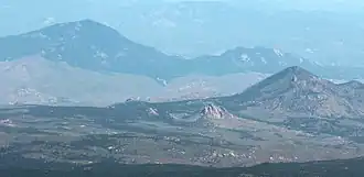 ![]() Green Mountain (left) and Thunder Butte viewed from Pikes Peak | |