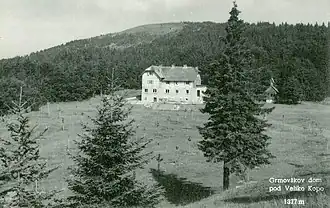 The Grmovšek Lodge Below Big Kopa Peak (Slovene: Grmovškov dom pod Veliko Kopo; 1377 m) is mountain hut under Big Kopa on the westernmost and highest part of Pohorje. The hut was built in 1937 and soon became important for hiking and wintersports. In 1942 it was burnt down, the hikers built new one in 1947, but it was also burnt down the same year. The third hut opened in 1954 and was named after Miloš Grmovšek, the then president of the Slovenj Gradec Hiking Club (PD Slovenj Gradec).